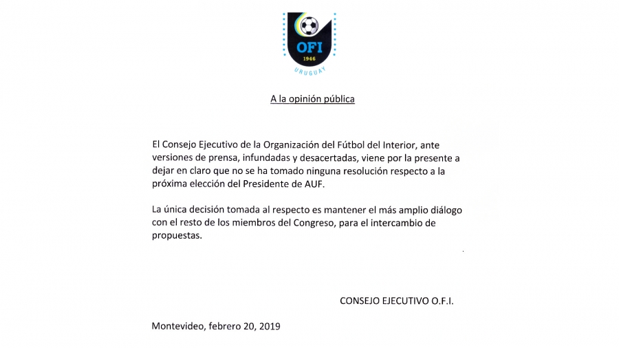 La Organización del Fútbol del Interior (OFI) es una Asociación Civil sin fines de lucro de carácter deportivo. Sus fines son fomentar el progreso y el desarrollo del fútbol en los departamentos del interior de la República Oriental del Uruguay, promoviendo la unidad del fútbol del Interior del país, como medio de acercamiento y conjunción de fuerzas.